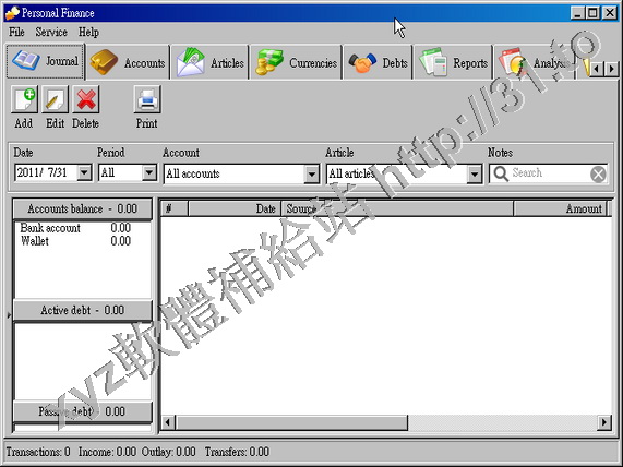 • Finance v1.33 英文正式版(個人財務管理工具軟體)