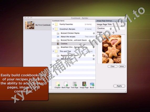 使用業界首款食譜集製作工具,你可以製作、列印和分享自己的食譜集。使用它可以為食譜集封面添
